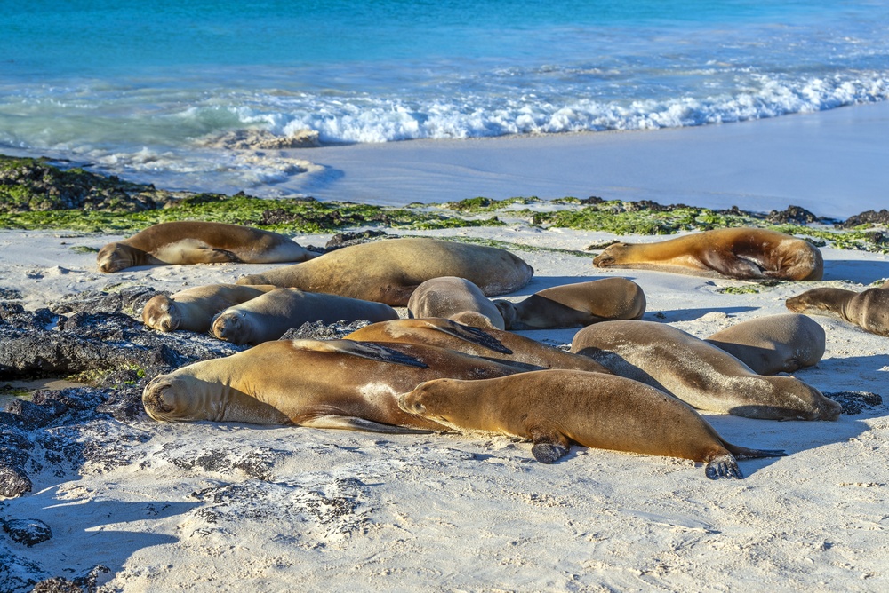 Pensione completa a bordo (bevande escluse). In mattinata visita a Bahia Gardner, Islotes Gardner (Española). Una delle spiagge più impressionanti delle Galapagos; la lunga spiaggia di sabbia bianca, bagnata da acque turchesi, ospita una colonia di leoni marini delle Galapagos indifferenti agli umani che camminano in mezzo a loro. I tordi di Española, endemici di questa particolare isola, mostreranno una certa frenesia nel ricevere i visitatori e nel soddisfare la loro innata curiosità. I fringuelli di Darwin possono anche unirsi alla folla, compreso il fringuello di Darwin grigio. Possibilità di tuffarsi dalla spiaggia per esplorare i bassi fondali della baia nelle acque di Española. Attrazioni: Tordi di Española, leoni marini, tartarughe marine, fauna marina.